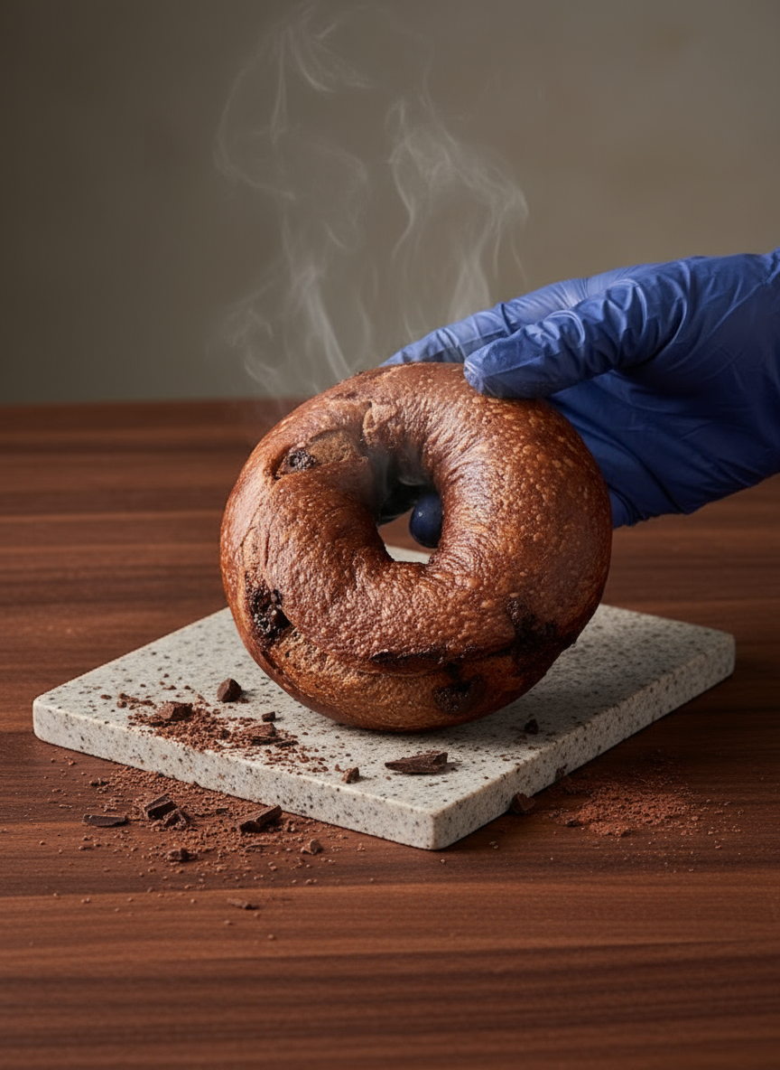 高筋麵粉 + 水 + 海鹽 + 麥芽糖 + 新鮮酵母 + 無糖可可粉 + 黑朱古力粒 + 糖