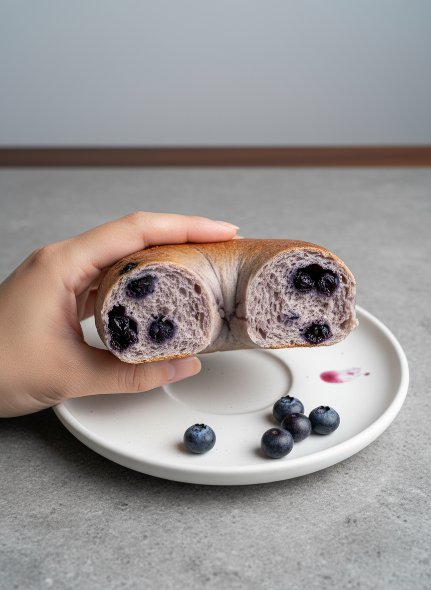 高筋麵粉 + 水 + 海鹽 + 麥芽糖 + 新鮮酵母 + 野生藍莓乾