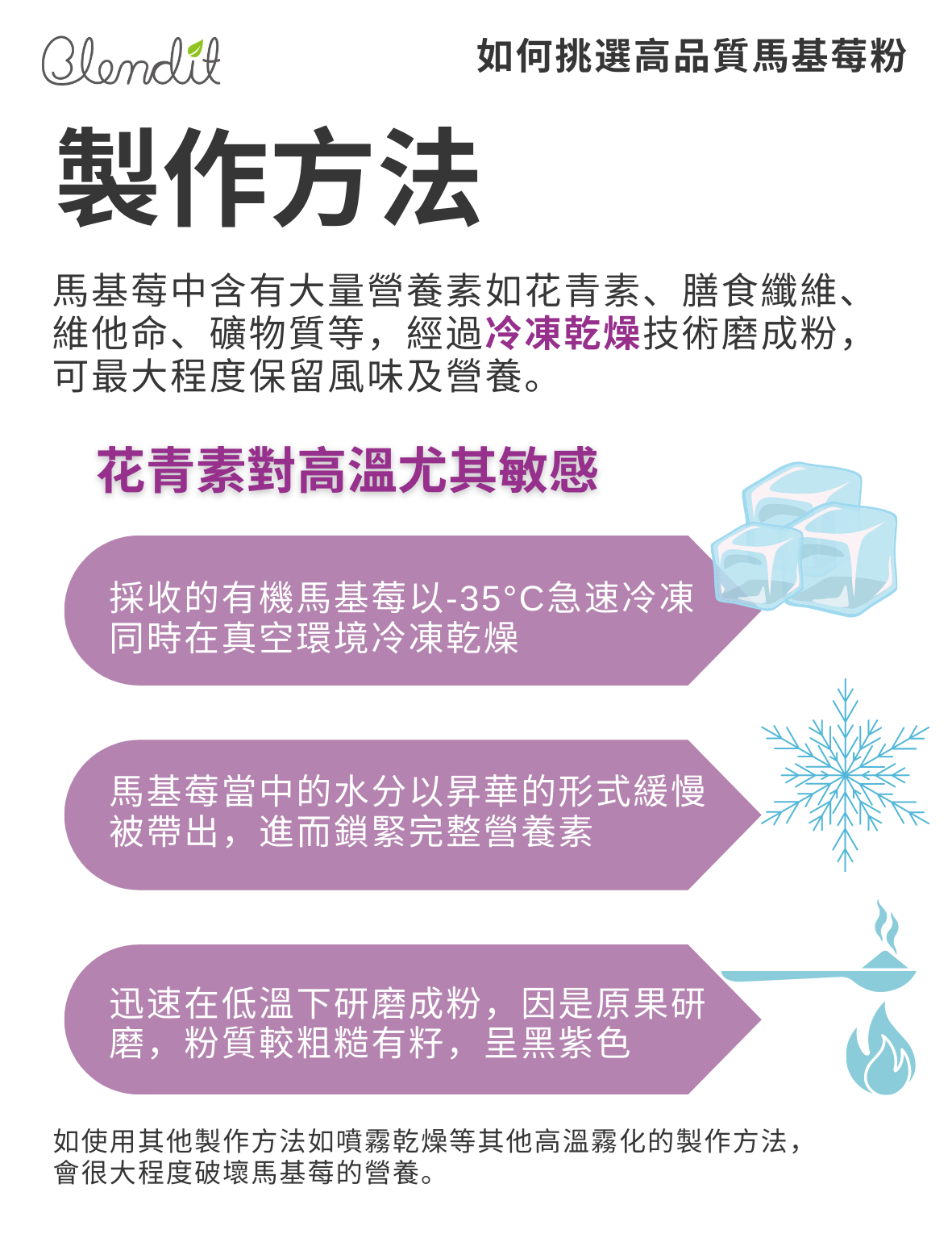 此外,馬基莓粉經冷凍乾燥製成,能最大程度保留其活性抗氧化劑,確保營養功效。